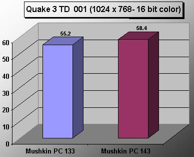 At first I thought I was seeing things, so I decided to retest it. Same result. Performed it again and this time was sure I was not seeing things. The astounding factor is that the modules perform at this high FSB at CAS 2. Never did the system show any signs of stress. Mind you people, we were able to run Quake III and 3D Mark many times round without the system ever crashing. Like I said before, Mushkin’s High Performance RAM are hand picked for their quality, which ensures this incredible stability even at high FSB’s. I’m sure they could do more, and we’ll be posting these results at the time we update this review with the 3D Mark 2001 results. We plan on beating the 150MHz mark, so we’ll keep you posted once we actually perform the tests.